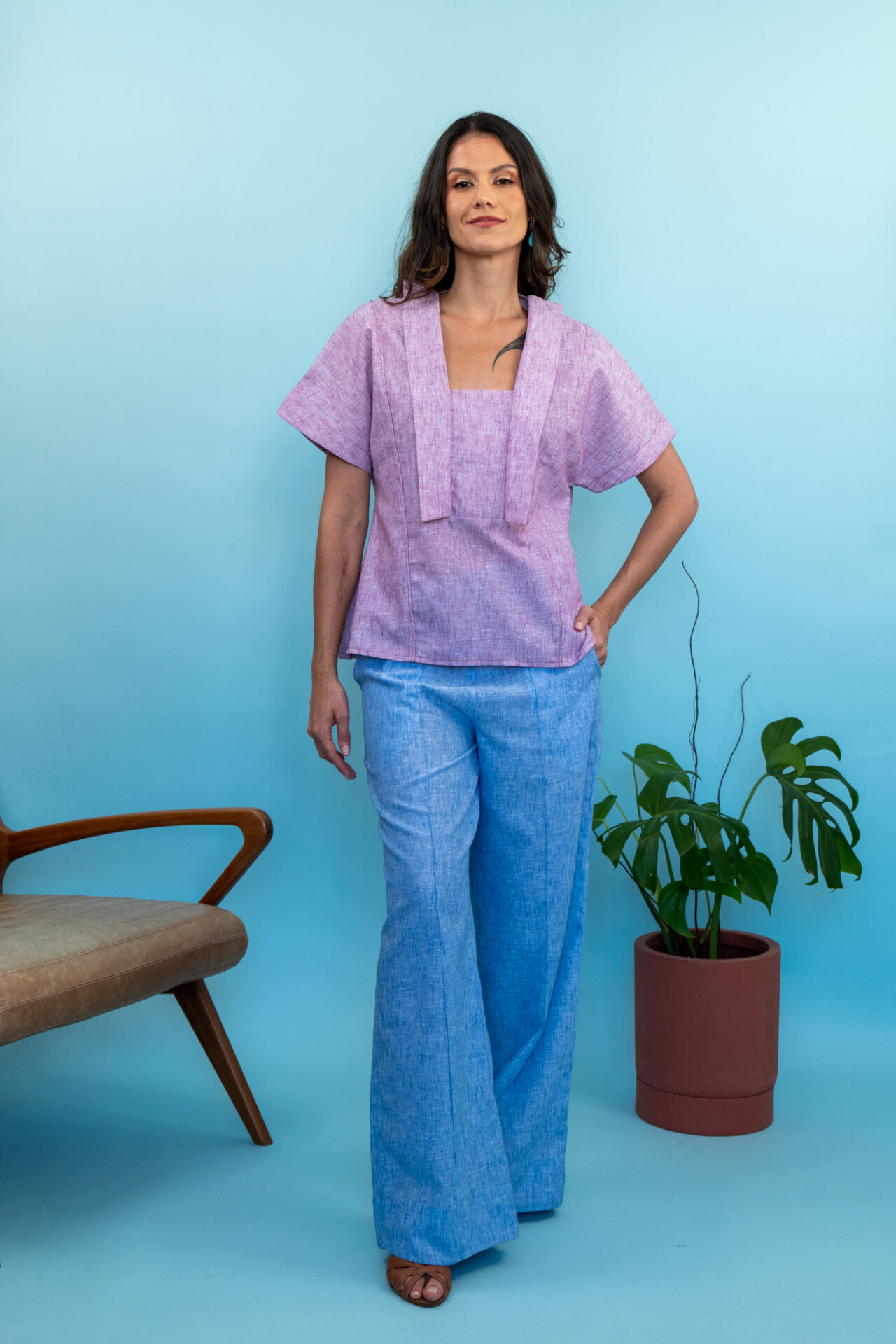 Disponível nas cores lilás orquídea e offwhite no algodão; e mostarda e vermelho melancia no chamois, a Bata Piano é sucesso certo em qualquer ocasião! Experimente combiná-la com a Calça Bossa, a Calça Flauta, a Saia Trompete ou o Short Violão.